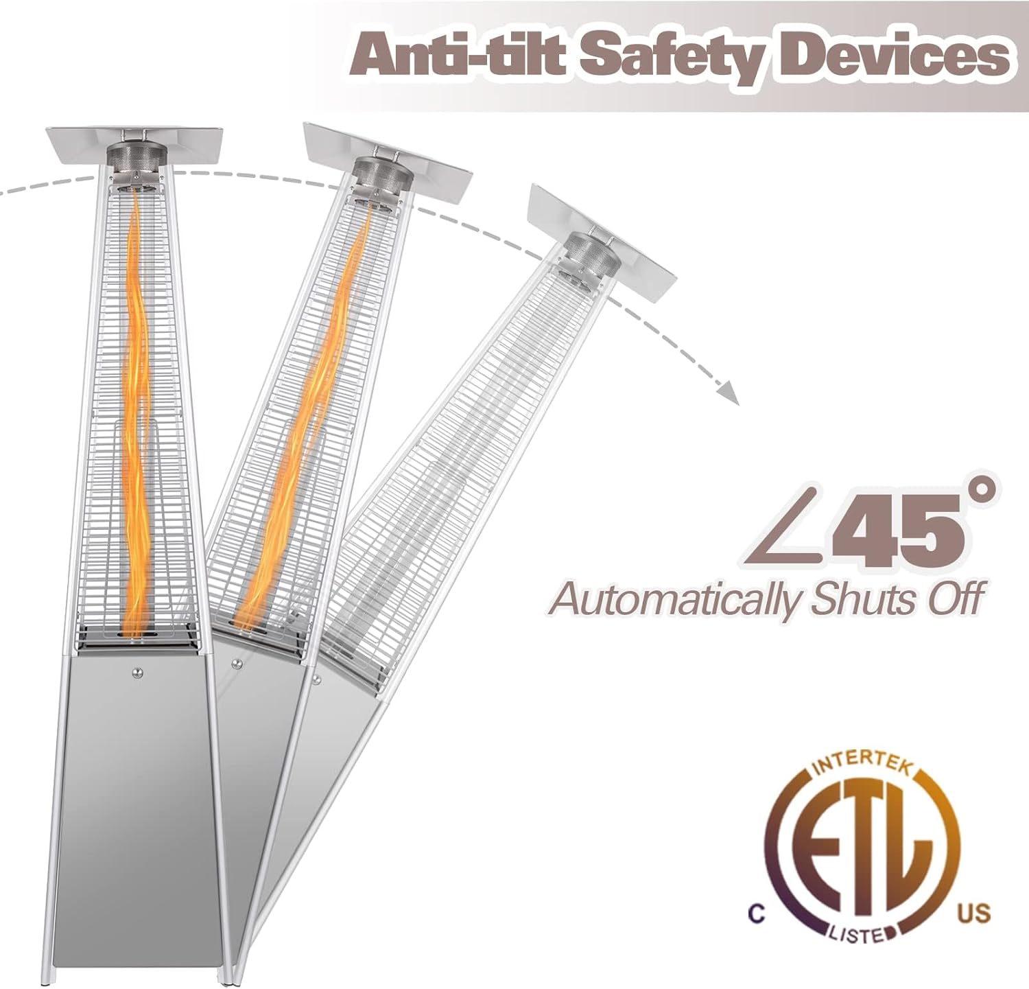 8 reviews for Hykolity 48000 BTU Pyramid Patio Heater, Outdoor Propane Heaters with Wheels and Cover, Glass Tube Propane Patio Heater for Backyard, Garden, Porch and Pool, Silver Grey